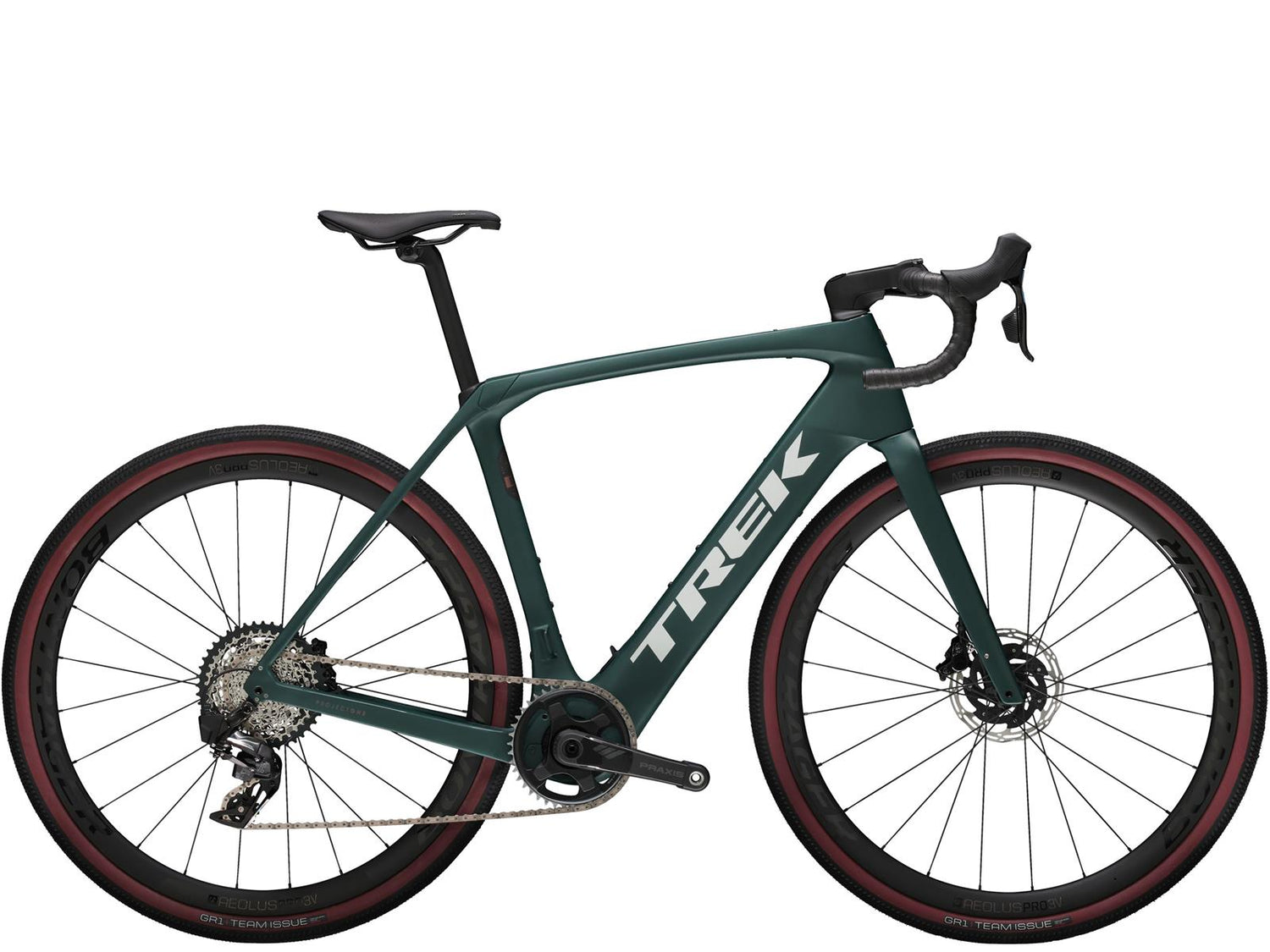 Trek bietet Dir seinen besten und leichtesten Rahmen aus 800 Series OCLV Carbon mit hinterem IsoSpeed. Einen kraftvollen Harmonic Pin Ring Motor von TQ mit 50 Nm Drehmoment und einer Unterstützung bis 25 km/h, einen 360 Wh großen integrierten Akku, ein in den Rahmen integriertes, smartes LED-Display und diskrete Bedienelemente in den Bremsgriffgummis für das Wechseln der Unterstützungsmodi. Aeolus Pro 3V Laufräder aus OCLV Carbon, eine drahtlose, elektronische SRAM Force XPLR AXS D2 1x12-Schaltung, Carbonkurbeln, einen vibrationsdämpfenden Bontrager Pro IsoCore Lenker und einen RCS Pro Vorbau mit integrierter Zugführung für eine cleane Optik.