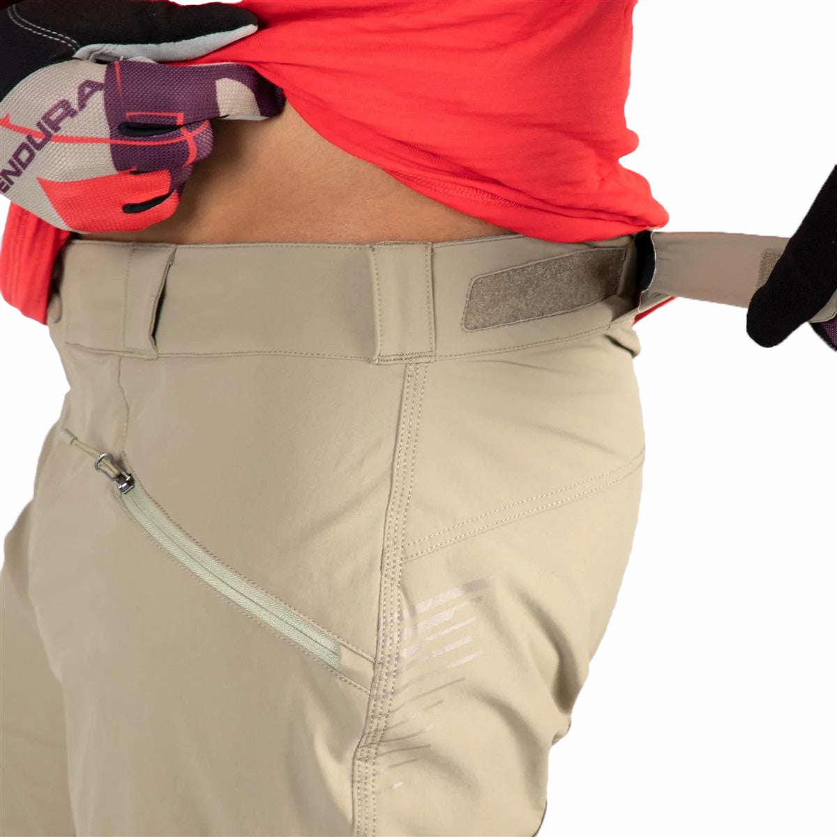 Dieses Kleidungsstück besteht aus Reißverschlusstaschen, Lüftungsschlitzen mit Reißverschlüssen, sowie einem Netzmaterial zur Temperaturregelung. Die Cargotaschen hinten bieten zusätzlichen Stauraum. Es wurde außerdem ein Bund aus Stretchmaterial eingebaut, sowie auch einen Hüftbund aus Velcro®.