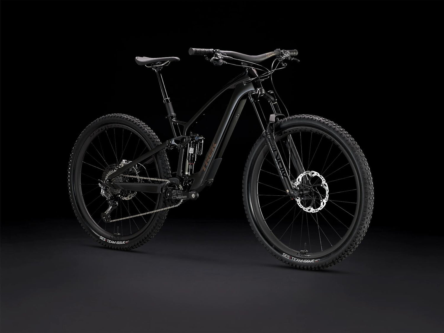 Tire: Bontrager SE5 Team Issue, Tubeless Ready, Core Strength sidewall protection, Aramid bead, 120 TPI, 29 x 2.50