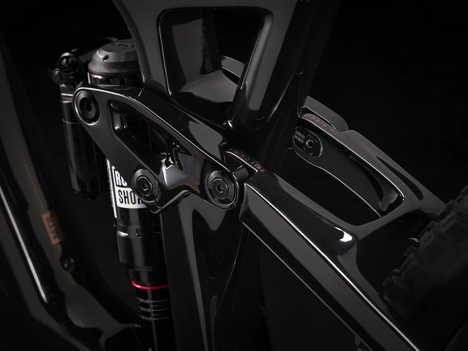Frame: OCLV Mountain Carbon, removable battery, internal cable routing, aluminum rocker link, seat tube diameter 34.9 mm, mount for upper chain guide, 55 mm chainline, Mino Link, ABP, Boost148, UDH, 140 mm travel