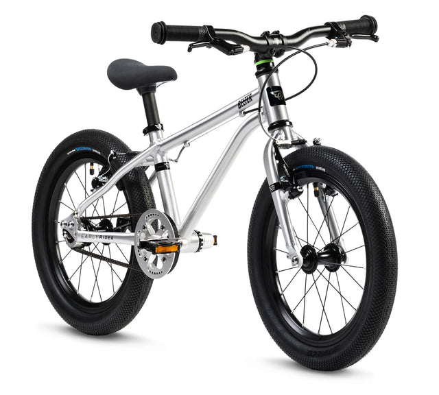 Der Belter 16 verfügt über leistungsstarke, altersgerechte Tektro V-Brakes mit ultrakurzen Hebeln und leichtgängiger Betätigung, sodass auch kleinste Hände sicher und einfach bremsen können. Die Bremsrückmeldung ist sanft und präzise und hilft jungen Fahrern, von Anfang an ein Gefühl für kontrolliertes Anhalten zu entwickeln.