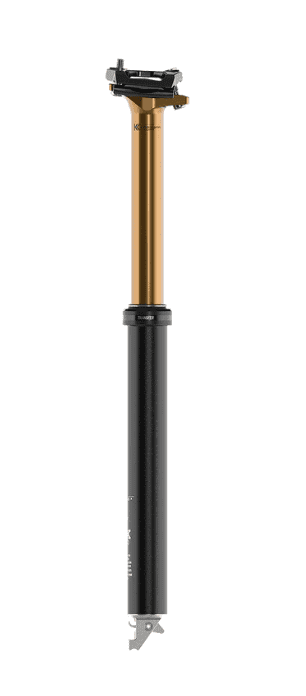 Erhältlich mit bis zu 240 mm Drop, Fahrer können den Federweg in 5-mm-Schritten um 25 mm verkleinern. Der 2-Schrauben-Low-Stack-Kopf sorgt dafür, dass der Transfer auf steilen Hängen nicht im Weg ist.