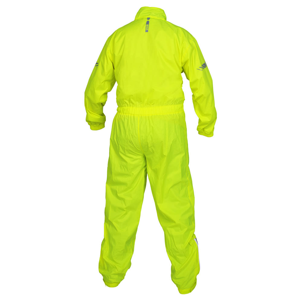 Die iXS Regenkombi Ontario 1.0 ist 1-teiliger Regenoverall mit reflektierenden Transferdrucken